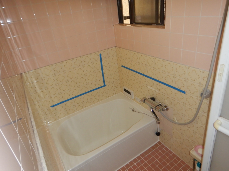 床や壁がタイル張りの在来工法の浴室で、浴槽が劣化していました。