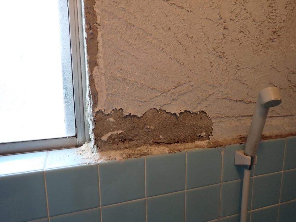 また壁の一部が剥がれて落ちたり、タイルの目地にひびが入ったりしていました。