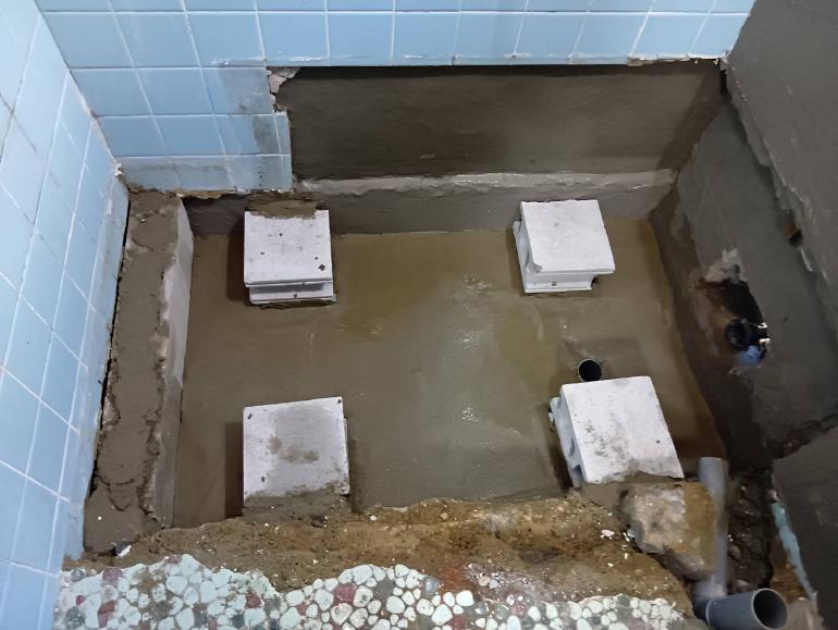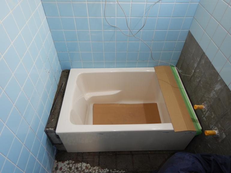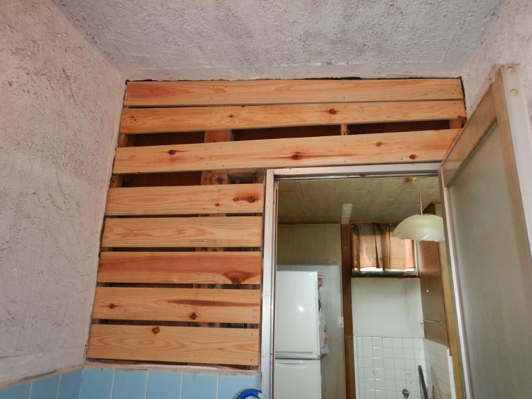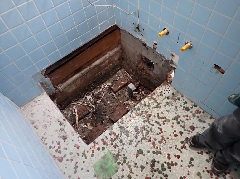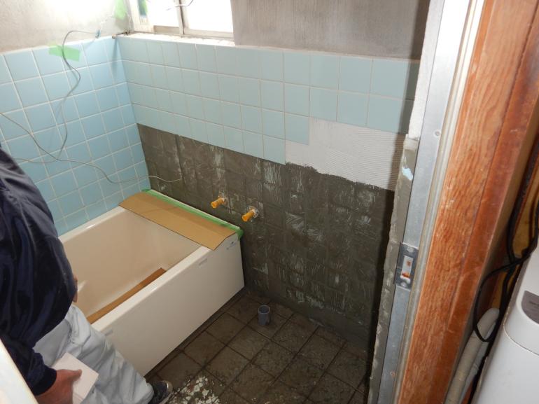 まず浴槽と壁の一部を解体し、壁の木下地をつくります。