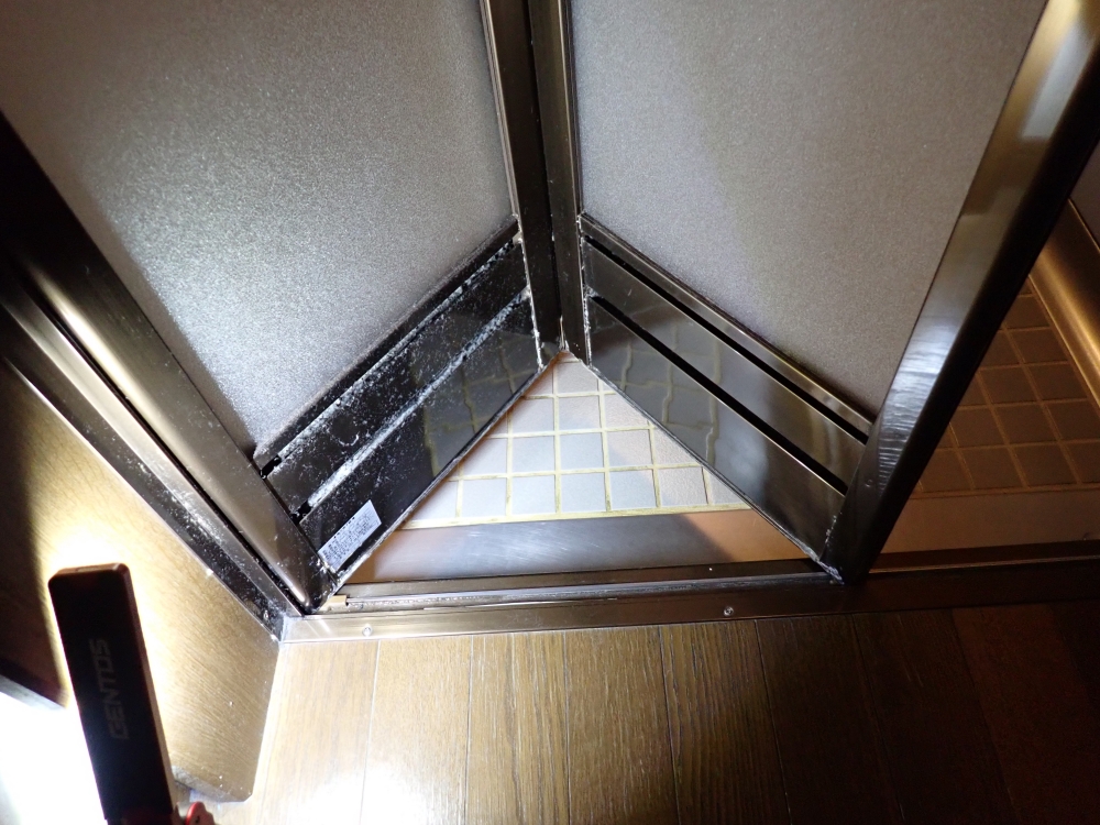 経年劣化により浴室折戸をスムーズに開け閉めすることができず、汚れも落ちにくくなっていました。