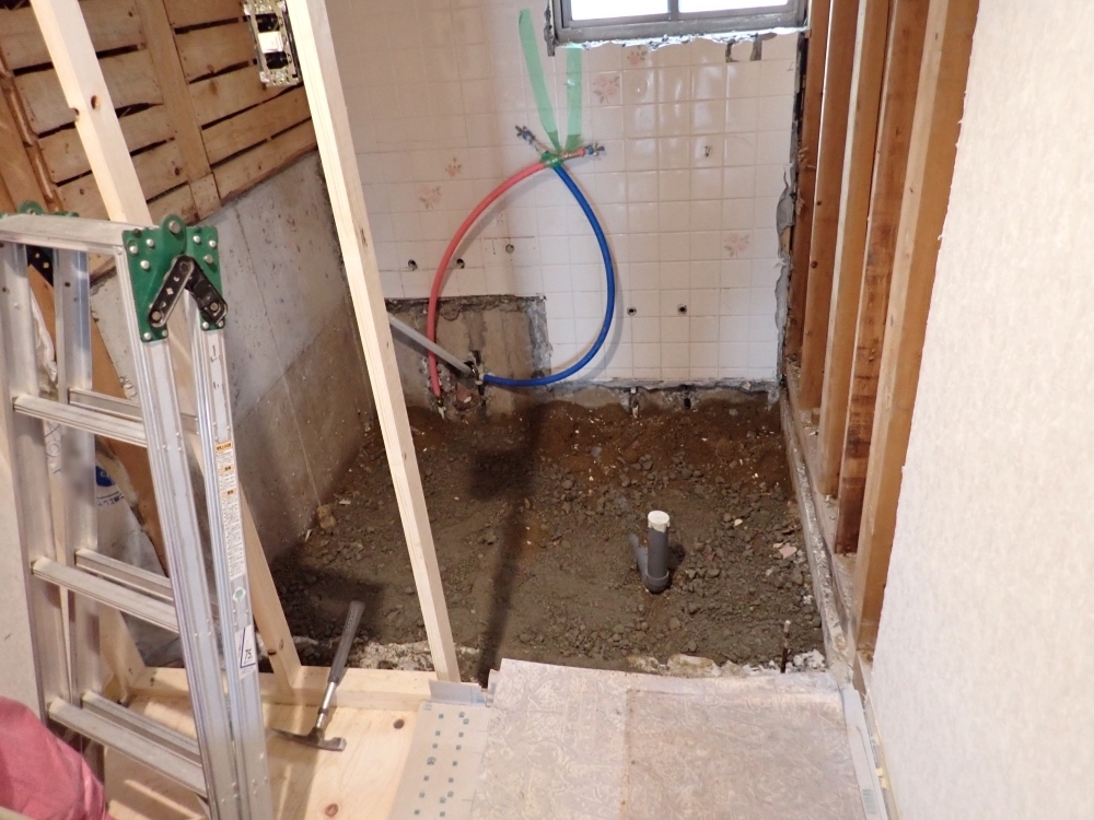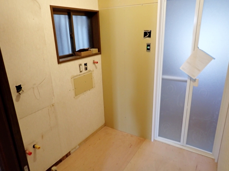 浴室のスペースを広くしたいとご希望で、隣の洗面脱衣所の一部を浴室にする方法をご提案しました。在来工法の浴室からユニットバスへ交換していきます。