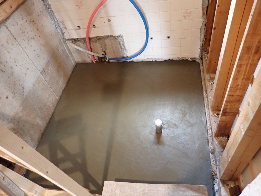 ユニットバスの据付高さにあわせて土間を打ちます。