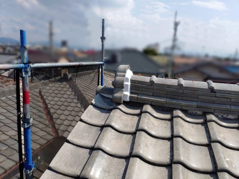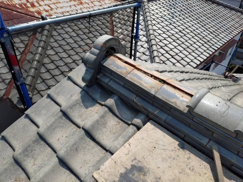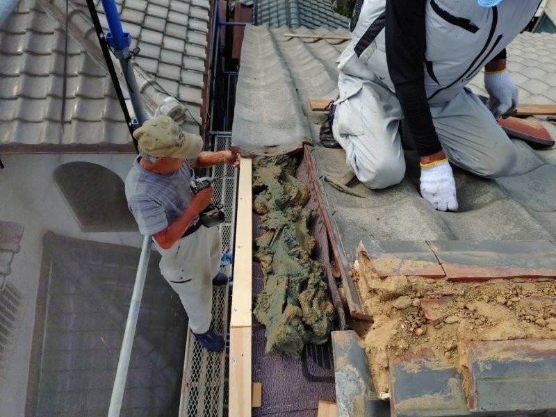 袖瓦の土を入替えて部分補修を行います。