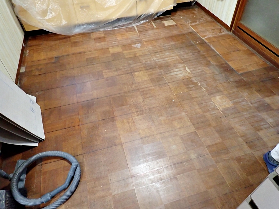 まず荷物を全て移動させ、敷かれていたフローリングをはがします。