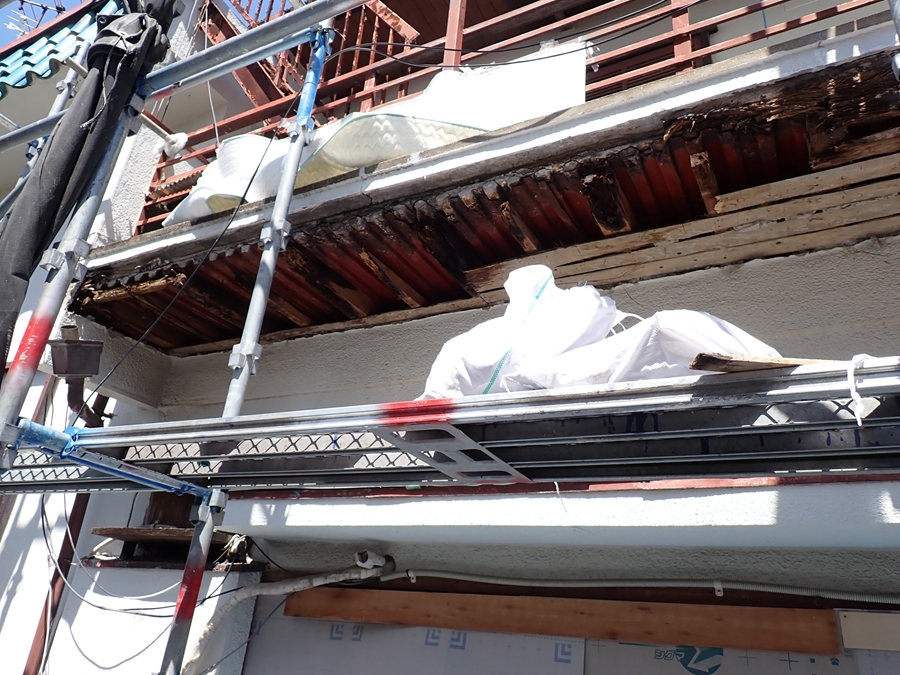 まず軒天を解体します。木材が腐食してボロボロになっていました。