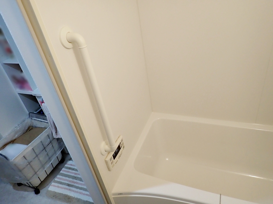 浴室は足元が滑りやすいので、出入口付近にI型手すりを設置しました。